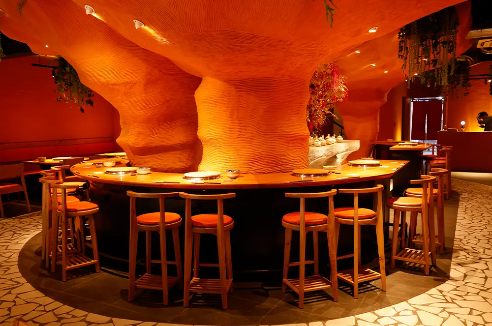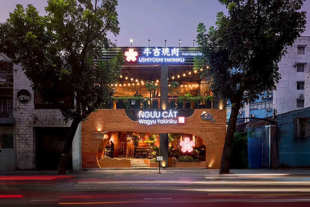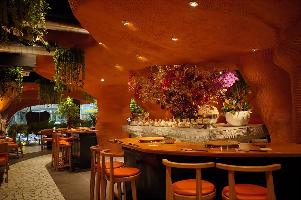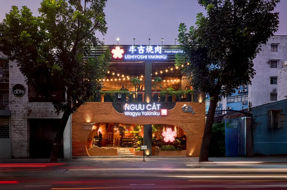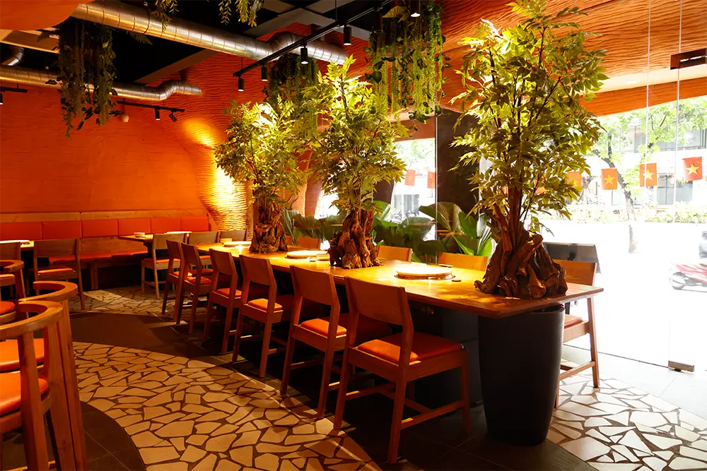ホーチミン市1区・ダカオエリアに誕生した日系焼肉店「Ushiyoshi」は、洞窟をテーマにした店内で、植物や流木のオブジェを配した洗練された空間になっています。
